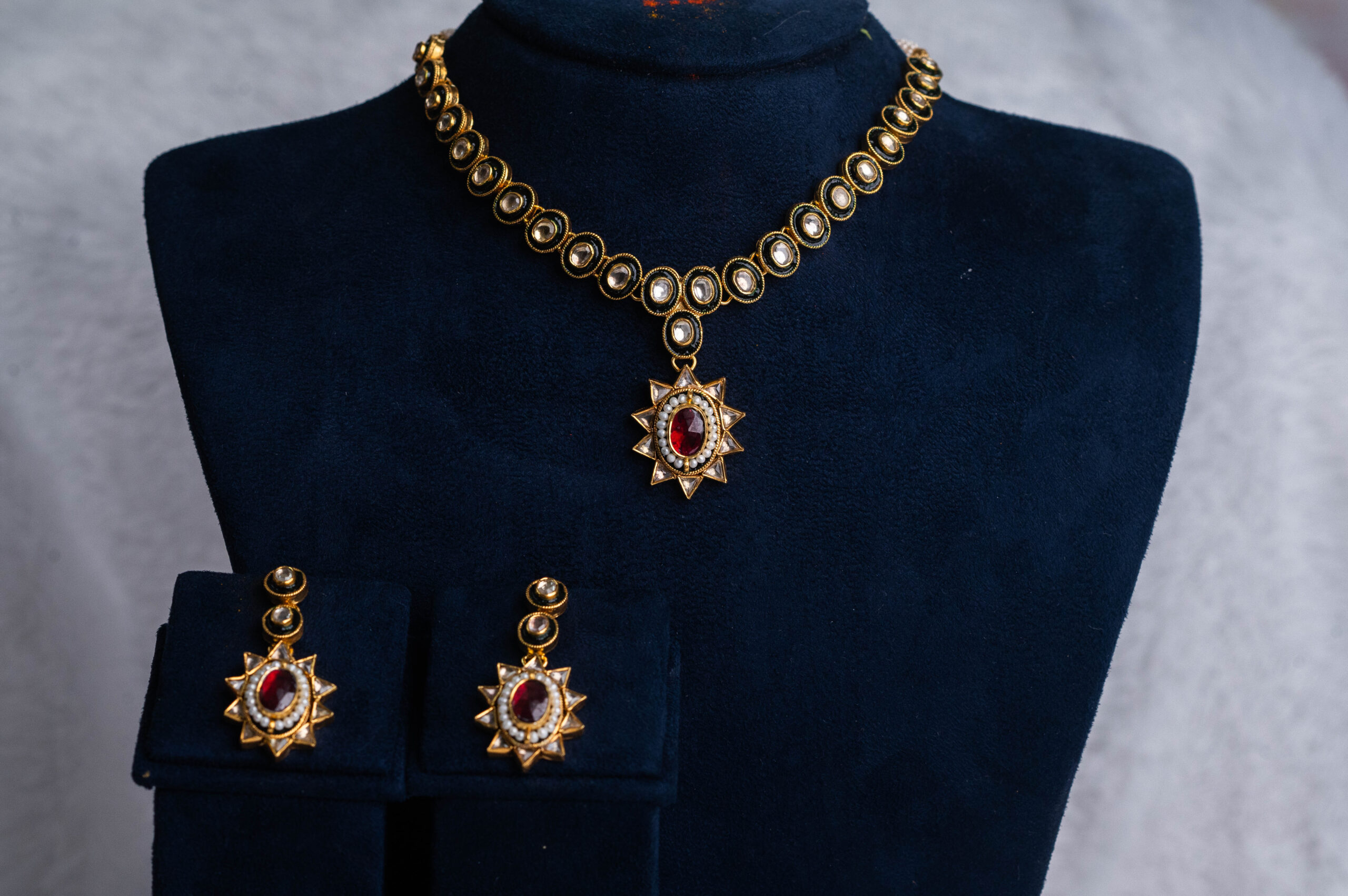Traditional kundan necklace with emerald and ruby stones