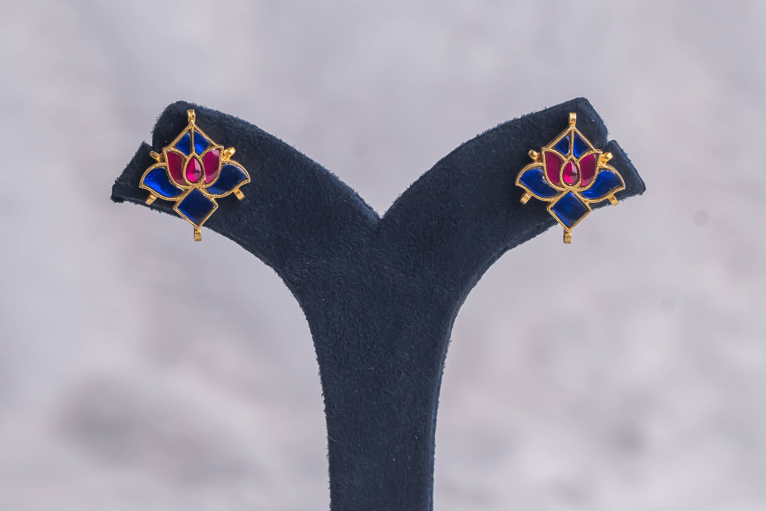 Kundan tops with traditional blue lotus pattern.